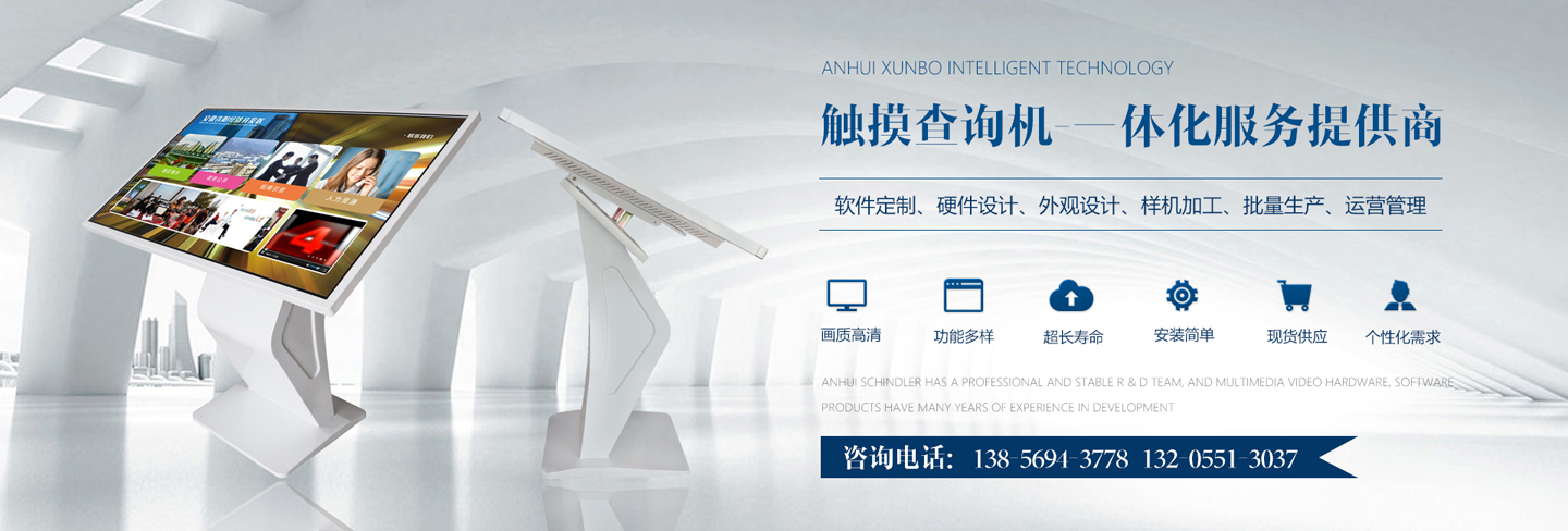 迅博智能 位于中國科教城---合肥市,和經濟開發(fā)區(qū)與高新區(qū)毗鄰,地址合肥市肥西縣湯口路與皋城路交口人民萬福產業(yè)園一期12棟東側,是一家IT領域的高新技術企業(yè),全心全意服務于信息化建設,做專業(yè)的信息化提供商,全力打造信息時代新模式。 迅博智能 主要從事觸摸屏、觸摸顯示器、OLED柔性觸摸屏、觸摸查詢一體機系列產品及觸摸顯示互動體驗軟硬件產品;智能排隊叫號、網上預約排隊叫號、安康碼皖事通取號系統(tǒng);曲面屏、OLED 屏幕、柔性屏、LCD液晶大屏拼接系統(tǒng);落地式、壁掛式單機版網絡版室內外廣告機及數(shù)字標牌廣告信息發(fā)布系統(tǒng);室內外LED電子格柵透明屏、單雙色、全彩電子大屏;各類辦事營業(yè)廳:公積金...